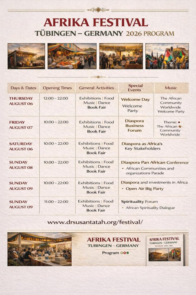 2026 program shall bring together,  Diaspora organizations, Africa-oriented initiatives, entrepreneurs, artists, and institutions that actively shape the African community in Germany and others.